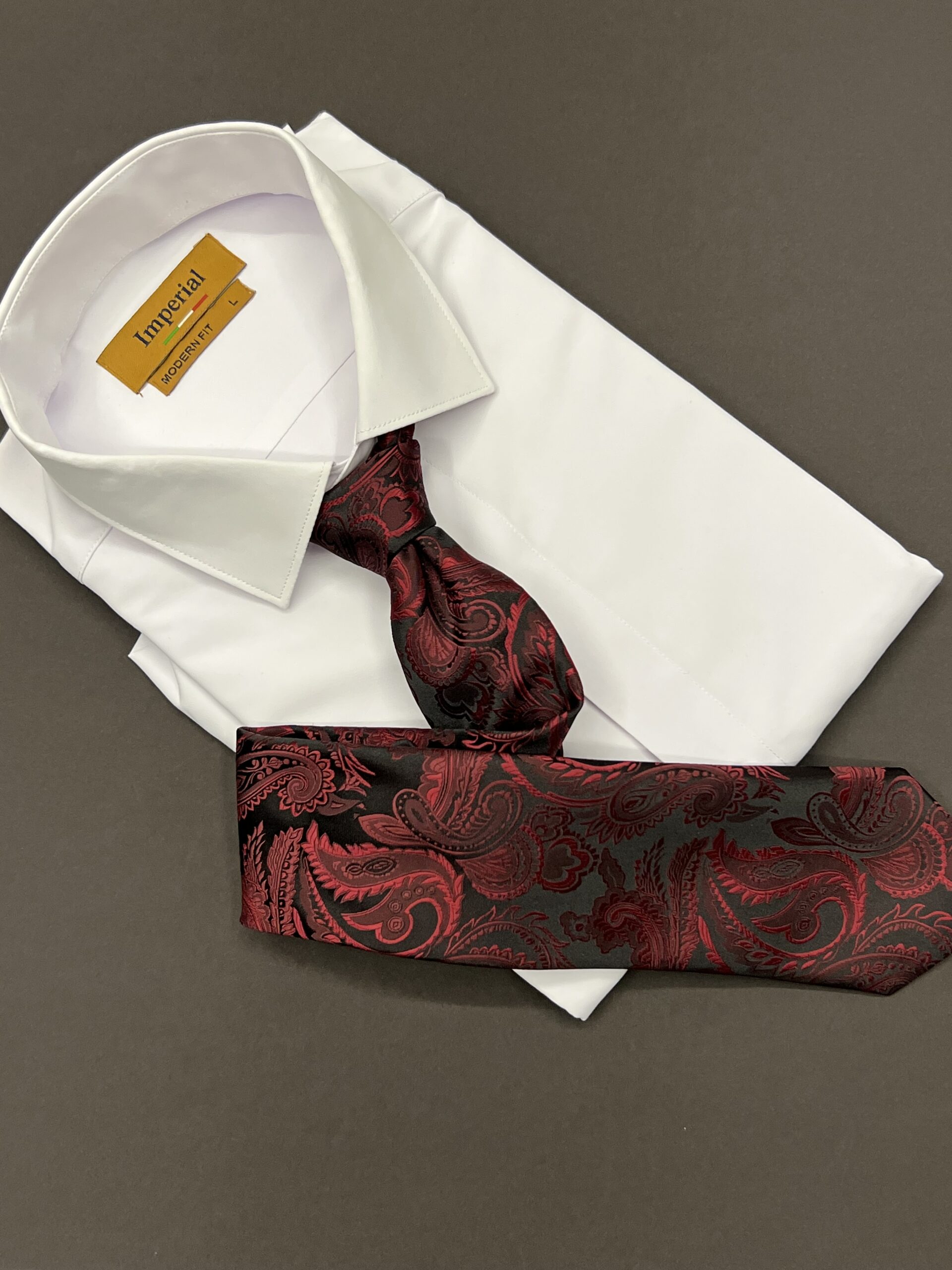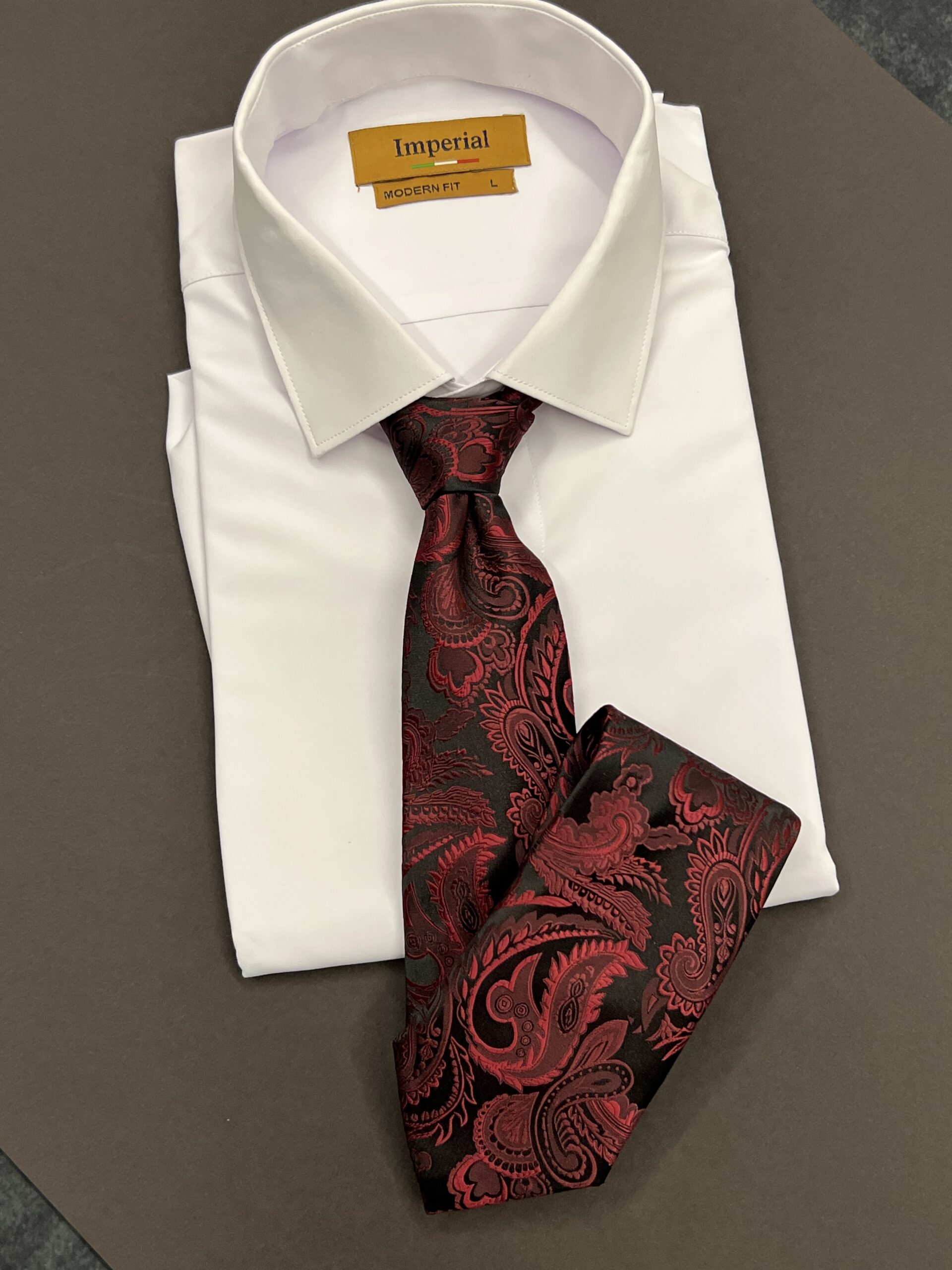 ست کراوات و دستمال جیب vip مدل بته جقه زرشکی
