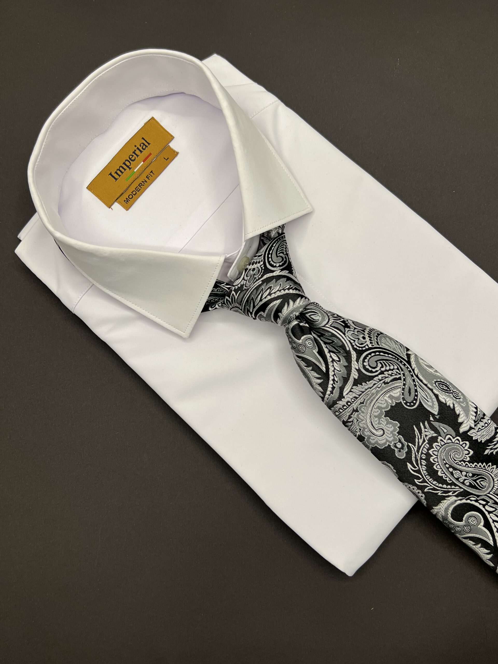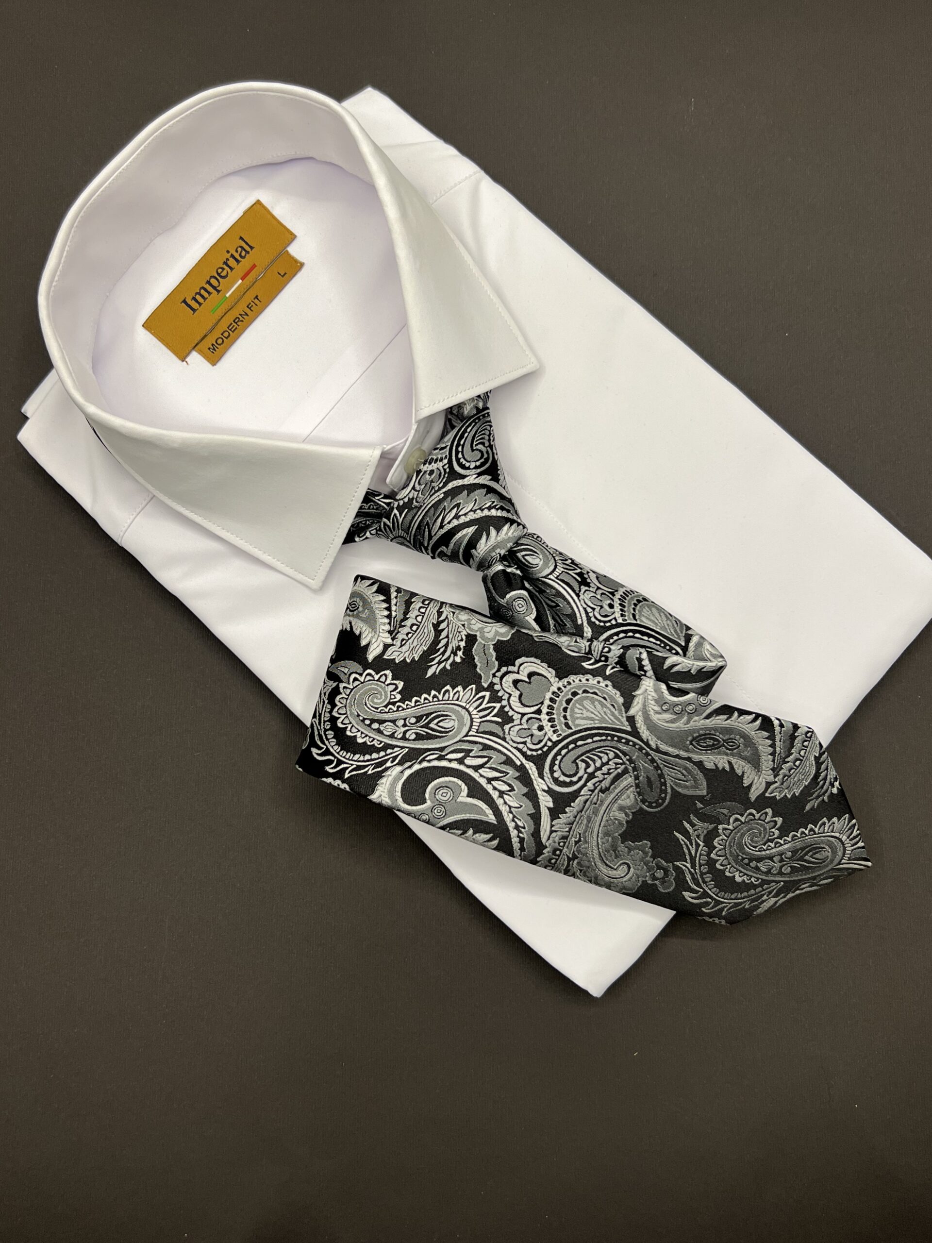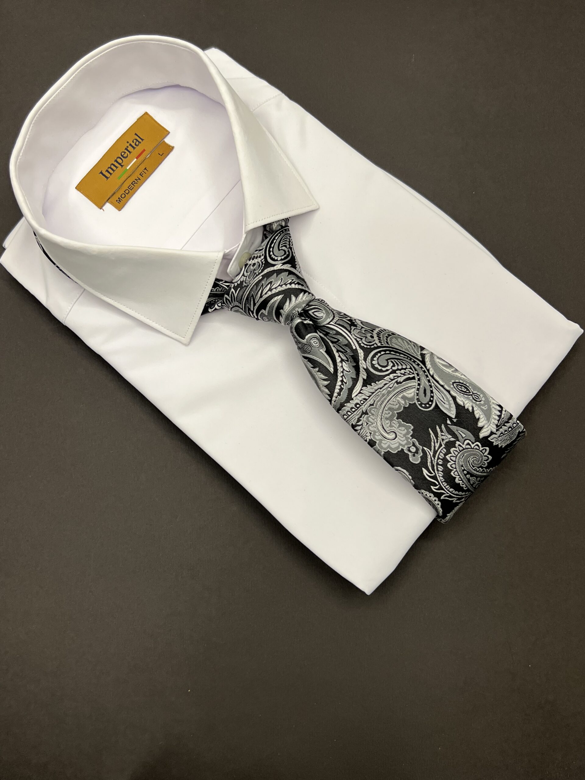 ست کراوات و دستمال جیب vip مدل کجراه نقره ای